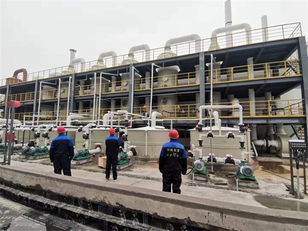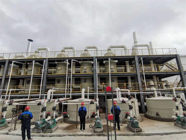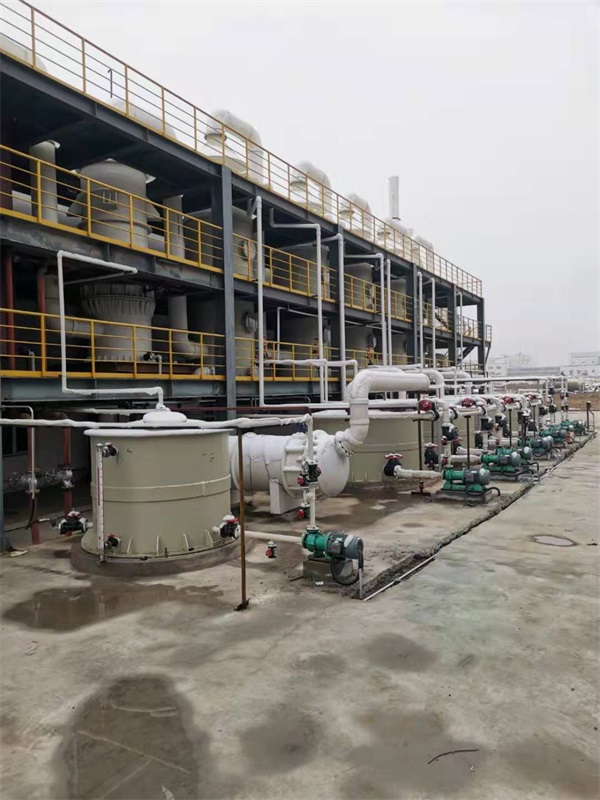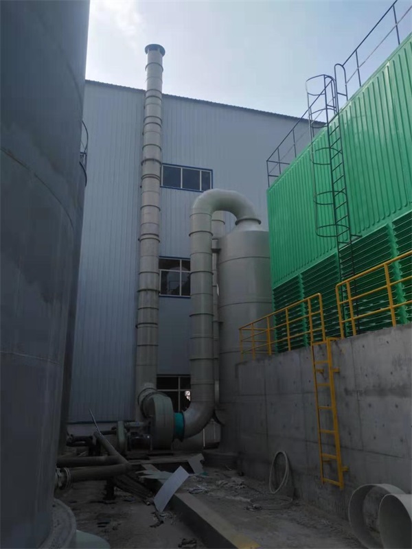 內(nèi)蒙客戶成品現(xiàn)場,酸霧廢氣由風(fēng)管引入凈化塔,經(jīng)過填料層,廢氣與氫氧化鈉吸收液進(jìn)行氣液兩相充分接觸吸收中和反應(yīng),酸霧廢氣經(jīng)過凈化后,再經(jīng)除霧板脫水除霧后由風(fēng)機(jī)排入大氣。吸收液在塔底經(jīng)水泵增壓后在塔頂噴淋而下,***后回流至塔底循環(huán)使用。